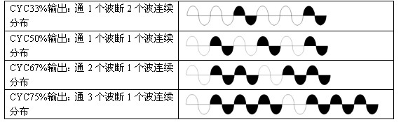 8、輸出CYC方式:負載電流按正弦波均勻通斷分布調(diào)功模塊