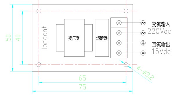 ㈥ 本公司有配套15V控制電源供應(yīng),外形尺寸:長75*寬50*高35 mm 。如下圖: