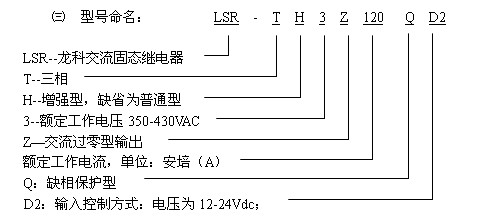 ㈠ 概述 LSR-TQ 系列缺相保護(hù)型三相交流固態(tài)繼電器,是在普通三相固態(tài)繼電器的基礎(chǔ)上增加了缺相保護(hù)電路,并且有超溫保護(hù)和欠壓保護(hù)功能,可有效地保證三相交流電機等三相負(fù)載的安全。繼電器采用進(jìn)口大規(guī)模集成電路,輸入輸出光電隔離,內(nèi)置RC吸收回路,雙色LED顯示正;蛉毕鄡煞N狀態(tài)。繼電器無須接入零線(N線),適用于感性負(fù)載或阻性負(fù)載,Δ形或Y形接法均可。