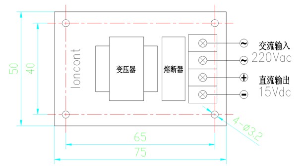 ㈥ 本公司有配套15V控制電源供應(yīng),外形尺寸:長75*寬50*高35 mm 。如下圖: